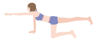 ①四つん這いの状態から背中はまっすぐにしたまま、対角線にある手と足を上げる